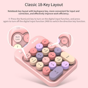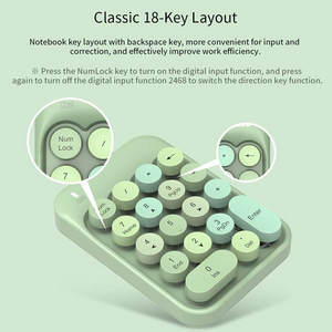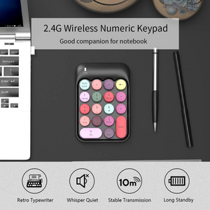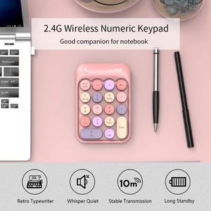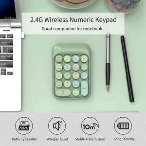 - Typewriter wireless numeric keypad combining retro style and modern design, with smooth edge technology and fresh colors, to provide retro visual enjoyment, cute number key with low profile whisper-quiet keys for a comfortable and smooth typing experience.