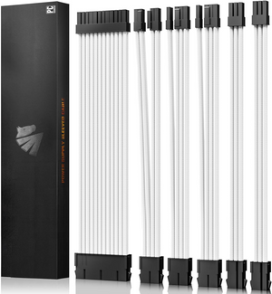 Asiahorse Power Supply Sleeved Cable for Power Supply Extension Cable Wire Kit 1x24-PIN/ 2x8-PIN (4+4) M/B,3x8-PIN (6+2) PCI-E 30cm Length with Combs (6 Packs, White)