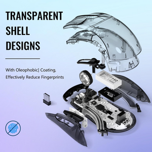 - 【Transparent Shell & 3D RGB Lighting】Unlike ordinary wireless computer mice, the transparent shell allows the X2's RGB lighting effects to be better displayed, creating an unprecedented deep and immersive lighting experience. The surface of the shell is coated with an oleophobic coating to reduce fingerprints and other smudges without affecting light transmission.
