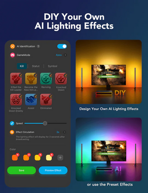 Experience battlestation lighting like never before, with an AI chip & sophisticated algorithm that recognize your in-game actions in real time and trigger situationally-aware lighting effects on the integrated RGBIC backlight and light bars. In addition, enjoy fast & accurate color matching for all your gaming, movie, and entertainment content.