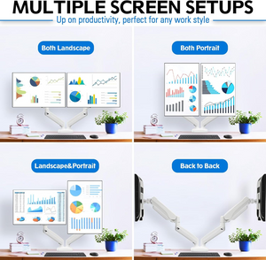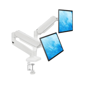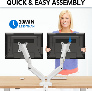 Sturdy dual monitor desk mount Featuring sturdy construction and outstanding flexibility, the dual monitor stand combines a great look and smooth movement. It is built with heavy-gauge steel, ensuring the safety and security of your double monitor setup. Besides, articulating arms are operated by a premium gas spring, making adjustment smoother and easier. Adjust the tension of the gas spring arm properly according to the weight of your monitor, and you can freely adjust your monitor to the desired position.