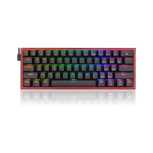 Redragon 60% keyboard in wired mode with fresh 2 colors mixed keycaps layout. Ultra-compact 61 keys with novel keycap color frees up precious desk space with vibrant elements.